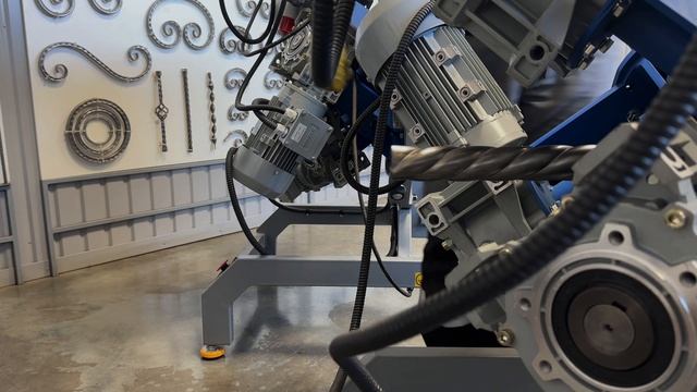 На одной стороне станины станка, смонтирован усиленный люнет. На противоположной стороне установлены четыре ползуна с накатными роликами и четыре мотор-редуктора. Применение 4 (четырех) накатных роликов, вместо 3 (трех), позволило изменить конфигурацию навивки (рисунка) и глубину продавливания на толщинах заготовок в 4,5 мм. Навивка на трубе четырех бороздовая, плотная, вздутая, смотрится очень привлекательно. Данный способ навивки является настоящим украшением орнамента изделия художественной ковки и изготавливается только на станке ПРОФИ-ВТМ.
